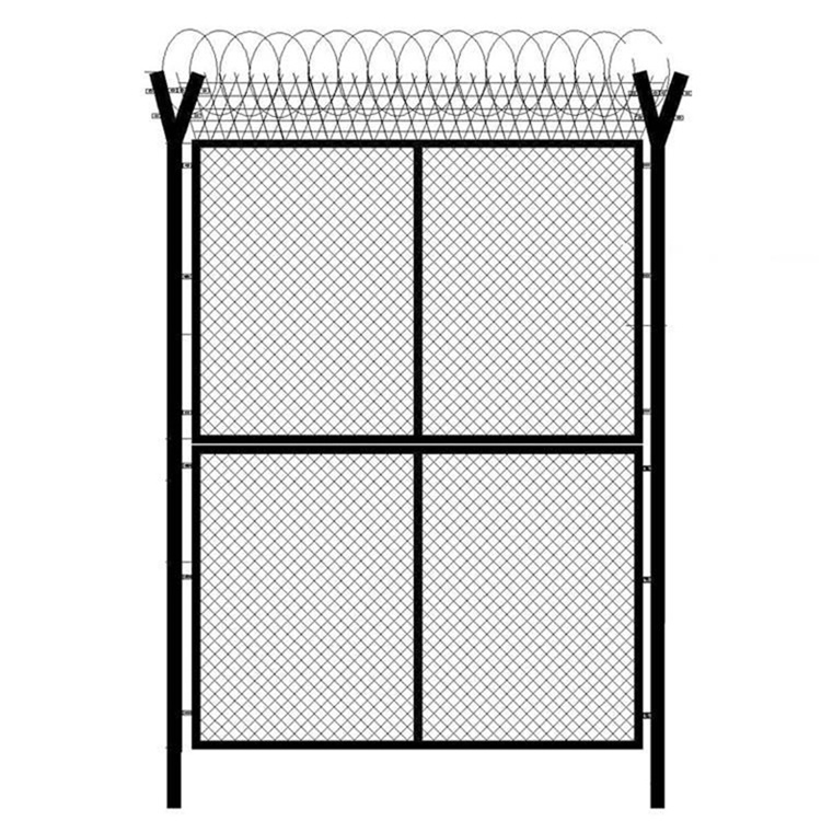 監(jiān)獄隔離網(wǎng)墻|監(jiān)獄刀刺隔離網(wǎng)|監(jiān)獄圍墻網(wǎng)主要是采用高強(qiáng)度的刀片刺網(wǎng)與普通防護(hù)網(wǎng)的結(jié)合,由v型支架立拄,加強(qiáng)型焊接片網(wǎng),安全防盜連接件和刀片刺網(wǎng)組成.刀片刺網(wǎng)是一種新型防護(hù)網(wǎng),由銳利尖角鍍鋅鋼板或不銹鋼薄板做刀片,鋼絲做芯線組合而成的防護(hù)器材.是由V型支架立柱,加強(qiáng)型焊接片網(wǎng),安全防盜連接件和熱鍍鋅刀片刺籠組成強(qiáng)度和安全防御性級(jí)別很高。近年來(lái),被廣泛應(yīng)用在監(jiān)獄,軍事基地等高安全場(chǎng)所。注:如果在監(jiān)獄護(hù)欄網(wǎng)頂部加裝刀片刺絲、刀片刺繩后又很好的增強(qiáng)了安全防護(hù)性能。采用電鍍、熱鍍、噴塑、浸塑等防腐形式,具有很好的抗老化、抗曬、耐候等特點(diǎn)。