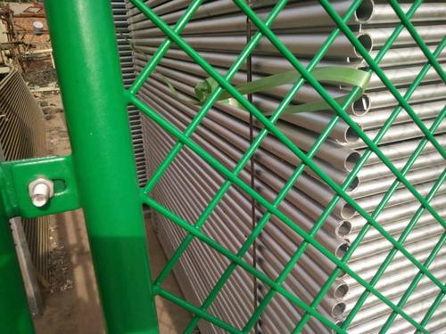 海關(guān)保稅區(qū)隔離網(wǎng)一般采用菱形孔金屬隔離網(wǎng),材質(zhì):鍍鋅材料;邊框:直徑40圓管,壁厚3mm;工藝:焊接然后浸塑;絲徑:5mm;孔徑:50*50mm斜方形孔;立柱:直徑76圓管,壁厚3.5mm,柱高2.9米(立柱頂端30公分彎頭);網(wǎng)片尺寸:1.5米(柱中1.7米)*2.2米高,表面處理:浸塑,一般為墨綠色、草綠色、白色、灰色等。