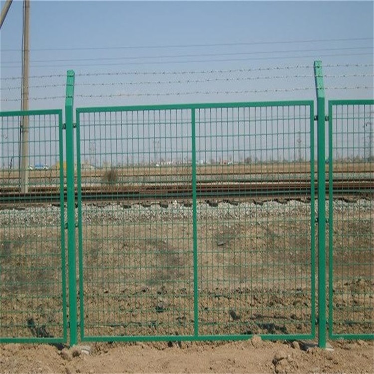 貨運(yùn)鐵路隔離柵欄的外型規(guī)格分別是2760mm*1790mm2760*1700mm,由φ4.0毫米鐵絲焊接成網(wǎng)眼大小75*150mm的鋼絲網(wǎng)片,邊框由30mm*50mm*2.0mm鋼管制造外框,將網(wǎng)片和外框?qū)嵭薪M焊,防腐處理為整體熱鍍鋅浸塑。產(chǎn)品組建十分簡(jiǎn)單網(wǎng)片的連接件相連接,連接螺栓采用防盜效果的墊圈,防止被盜。