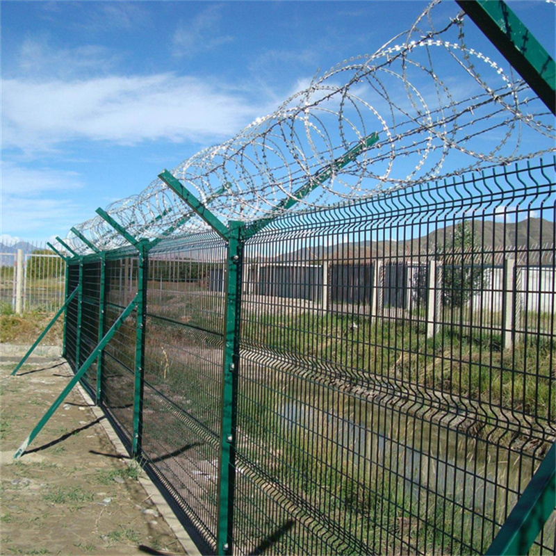 飛機(jī)場(chǎng)封閉網(wǎng)頂部加裝螺旋刀片刺網(wǎng)、螺旋刀片刺網(wǎng)大大增強(qiáng)了安全防護(hù)性能,防止一切外來(lái)人員攀爬,影響機(jī)場(chǎng)的正常運(yùn)行。采用電鍍、熱鍍、噴塑、浸塑等防腐表面處理,具有很強(qiáng)的防老化、防曬、防腐蝕等優(yōu)異特點(diǎn)。其產(chǎn)品造型美觀、顏色多樣,既起到圍護(hù)的作用,又起到美化的作用。