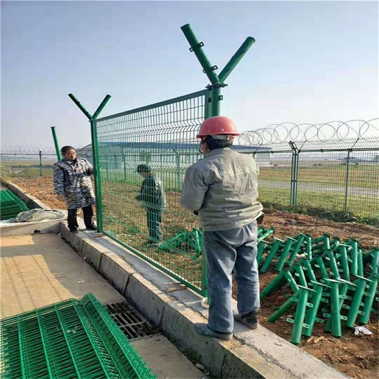 網(wǎng)片一般為4道折彎,折彎處加持加強筋,大大增強網(wǎng)片的堅固性,立柱采用Q195鍍鋅焊接鋼管,規(guī)格:60X60mm,厚度不得少于1.5mm。