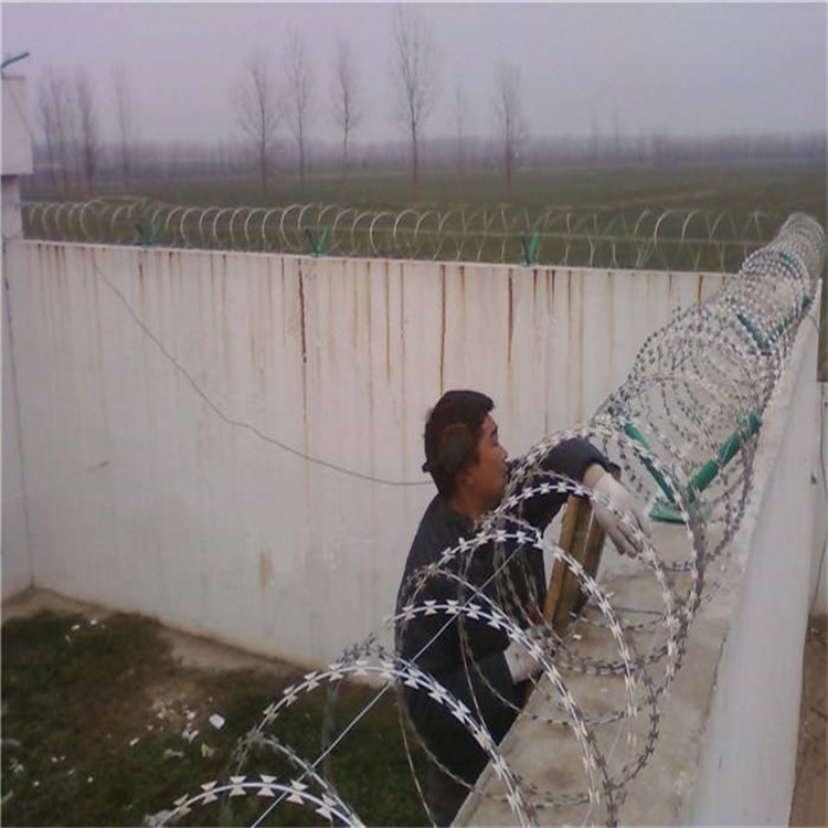 鋼網(wǎng)墻刀刺網(wǎng)由于其高墻的防攀爬效果正在更多的被人們應(yīng)用到監(jiān)獄系統(tǒng),在安裝過(guò)程中一定要注意刀刺的鋒利性,穿戴防護(hù)措施以避免被刀刺劃傷。