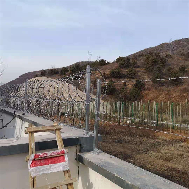 特 點(diǎn):刀片刺網(wǎng)又名刮刀型刺絲,是一種發(fā)展起來(lái)的防護(hù)、隔離能力較強(qiáng)的新型防護(hù)網(wǎng)產(chǎn)品。鋒利的刀型刺由雙線扣裝后成蛇腹?fàn)?,既美觀又讓人不賽而榮。起到了很好的阻嚇作用。同時(shí)該產(chǎn)品具有美觀、防陰效果好、施工便利等優(yōu)點(diǎn)。刀片刺繩一般用干監(jiān)獄做防護(hù)用,因刀片鋒利不易觸摸,起到一定的嚇陰作用那個(gè),刀片刺繩,用途比較廣泛,他可以用于居民的墻體防護(hù),也可以用來(lái)地等,該刺繩防咨效果比普誦刺繩要好,價(jià)格也不高,所以刀片刺繩越來(lái)越應(yīng)用廣范。刀片刺網(wǎng)又名刀片刺繩,是一種發(fā)展起來(lái)的防護(hù)、隔離能力較強(qiáng)的新型防護(hù)產(chǎn)品。