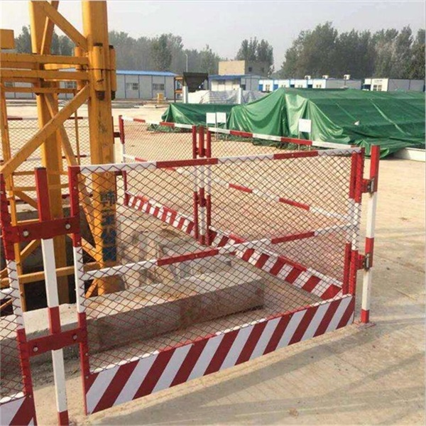 基坑臨邊防護欄由防護網(wǎng)片和立柱組成?;訃鷵踝o欄防護網(wǎng)片由2cm×4cm方管焊接組成,單片尺寸1.1米×1.7米,兩端設(shè)有跨耳用Φ10螺栓與立柱連接固定,跨耳與上下邊緣距離為15cm。立柱采用8cm方管 高度1.3m,底部有法蘭(8mm×15cm×15cm鋼板)每個法蘭盤設(shè)4個螺栓孔、頂部封閉,與地面用Φ14膨脹螺栓固定。網(wǎng)片設(shè)計為黃色、立柱為紅色,均為噴繪,以達到紅白相間的警示效果。網(wǎng)片網(wǎng)格為50*50mm,鋼絲直徑為3.5mm。