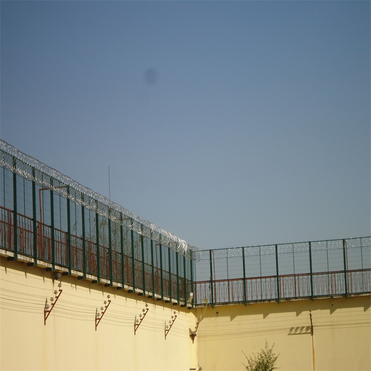監(jiān)獄隔離網(wǎng)的制造及特點:鋼絲為芯絲,將沖壓好的刀片包裹在芯絲上,一次制成。安裝方便,壽命長,而且具有極強(qiáng)的防護(hù)能力和優(yōu)秀的恐嚇能力