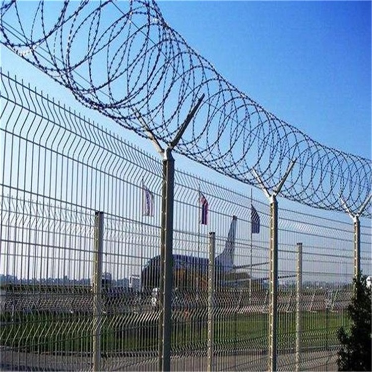 6、不銹鋼刀刺網(wǎng),直徑500mm、600mm的不銹鋼304材質(zhì)刀刺網(wǎng),螺旋狀安裝在機場圍欄網(wǎng)上方,增加機場封閉性,阻止攀爬行為發(fā)生,保障人身安全和整個機場順利開展工作。