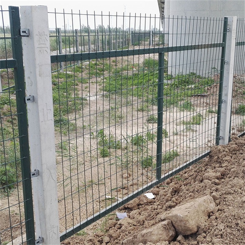 鐵路線路上采購防護(hù)柵欄是要保證安全,所以對(duì)防護(hù)柵欄要求較高。鐵路線路上使用的柵欄類型也不太一樣,根據(jù)使用的位置,鐵路防護(hù)柵欄的強(qiáng)度也都有區(qū)別。鐵路防護(hù)柵欄的類型大致分為:雙邊絲護(hù)欄,直框護(hù)欄,頂部30°折彎的護(hù)欄。一般鐵路線路兩側(cè)為了阻止落石或者阻擋外界的任何動(dòng)物的時(shí)候會(huì)選擇雙邊絲護(hù)欄網(wǎng)作為隔離網(wǎng)。鐵路鐵軌兩側(cè)會(huì)使用直框護(hù)欄或者加折彎的護(hù)欄作為防護(hù)網(wǎng)。但是作為鐵路防護(hù)柵欄的護(hù)欄邊框不能使用普通的20*30mm的小邊框,而是采購30*40mm的方管邊框作為護(hù)欄網(wǎng)的邊框與低碳鋼絲焊接。或者是以鋼板網(wǎng)作為網(wǎng)片,四周焊接角鐵,也被稱為框架型的鐵路防護(hù)柵欄。安裝尺寸:1.8米*3米,柱中到柱中,鐵路線路上常采用水泥立柱與網(wǎng)片連接。邊框:30*40mm,或者40*40的角鐵。表面處理:浸塑草綠色或者浸塑墨綠色。