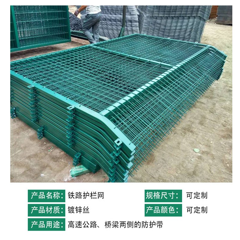 這兩種鐵路防護柵欄的除了頂部設計的不同,其他方面原材料、規(guī)格(絲徑、孔徑、框管、表面處理)都一樣,一般8001鐵路柵欄用在橋上比較多,8002柵欄用在橋下比較多。