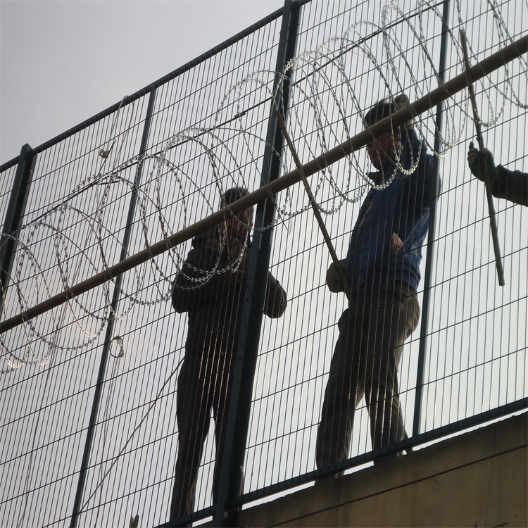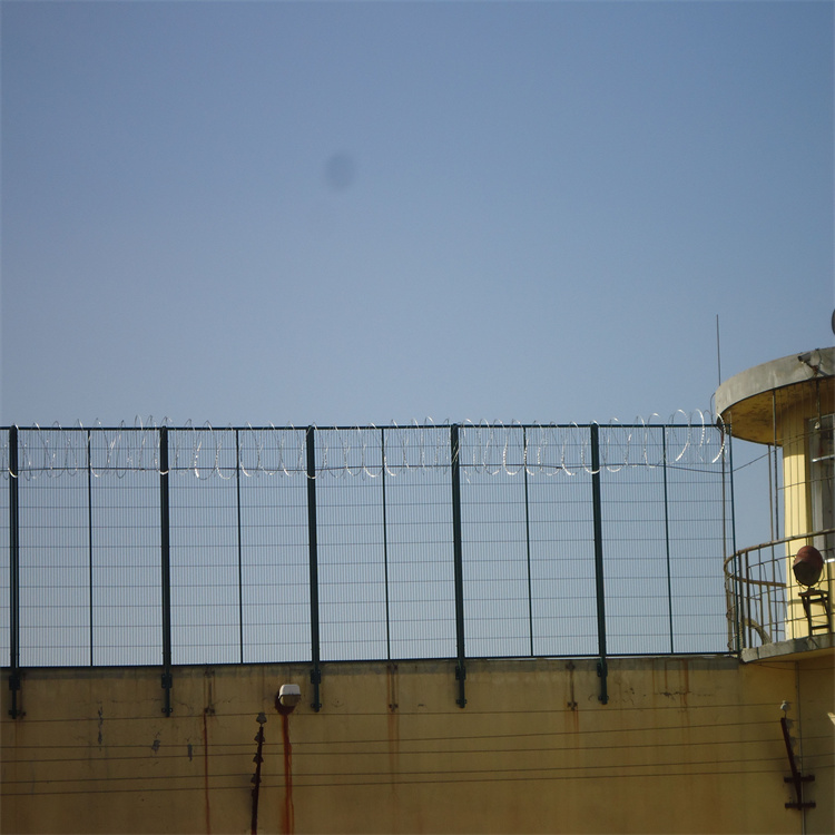 監(jiān)獄鋼網(wǎng)墻主要由蛇腹式刀刺網(wǎng)、高碳鋼絲焊接網(wǎng)片Y型柱與安全防盜連接件組合而成。