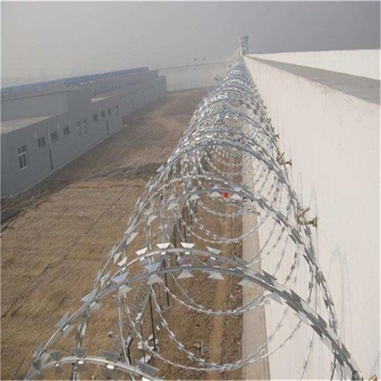 刀片刺繩也被稱為刀片刺絲、刀片刺網(wǎng),是一種新型防護(hù)網(wǎng)。具有美觀、經(jīng)濟實用、防阻效果好、施工便利等優(yōu)異特點。刀片刺網(wǎng)由熱鍍鋅鋼板或不銹鋼薄板沖壓出尖銳的刀片狀防護(hù)網(wǎng)。