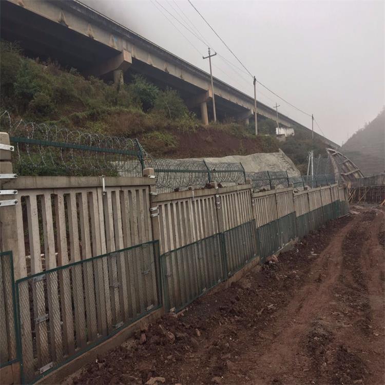 鐵路加密金屬網(wǎng)片隔離柵使用范圍: 高速鐵路橋梁墩高3米及以上旱橋地段的鐵路封閉。