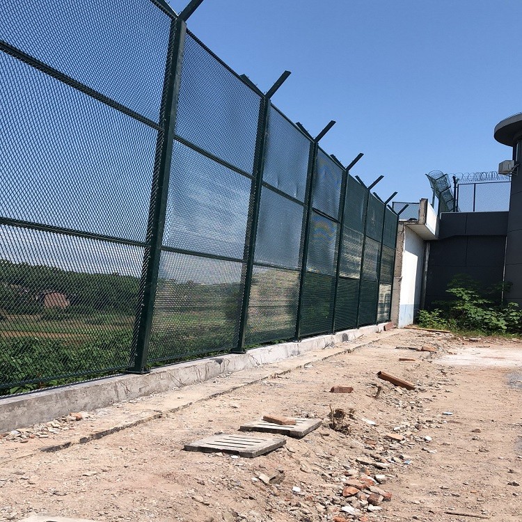 監(jiān)獄鋼網(wǎng)墻主要分鍍鋅,浸塑兩種,是以立柱網(wǎng)片加刀片刺繩制作而成。