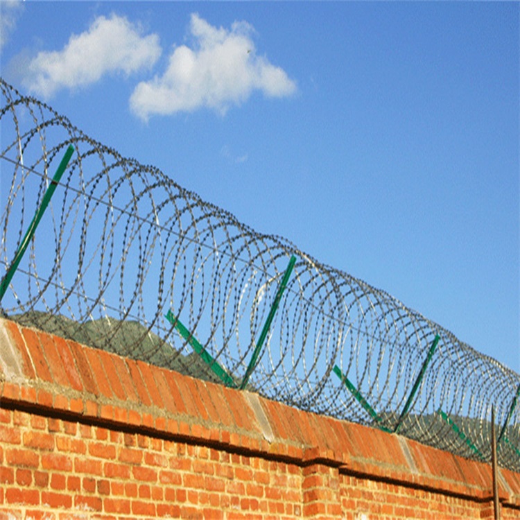 單螺旋刀片刺網(wǎng)由熱鍍鋅鋼板或不銹鋼薄板沖壓出尖銳的刀片狀,高張力鍍鋅鋼絲或許不銹鋼絲做芯線組合而成的阻絕器件。因為刺網(wǎng)造形一同不易觸摸,因此能抵達很好的防護阻隔作用。產(chǎn)品的材料有鍍鋅板和不銹鋼板。