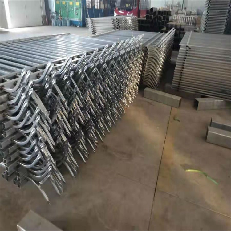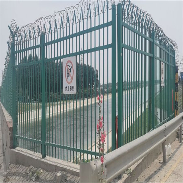 柵欄網(wǎng)片欄柵網(wǎng)片為帶尖彎頭鋅鋼型隔離網(wǎng),由橫桿、中間立柱和弧線(xiàn)槍尖組成。