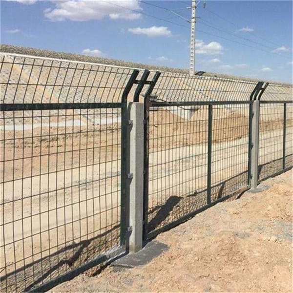 鐵路防護(hù)柵欄網(wǎng)為冷拔鋼絲點(diǎn)焊熱浸塑網(wǎng)片,外型尺寸為2760*1790mm,網(wǎng)格尺寸為75*150mm,鋼絲為φ4mm , 網(wǎng)片邊框采用20*30*1.5mm的方管焊接而成,網(wǎng)片連接片由40*40*4mm鋼片制作,防盜螺栓的螺柱、螺帽、墊圈等作熱鍍鋅處理。鐵路柵欄網(wǎng)片表面采用熱浸塑處理,顏色為墨綠色,整個(gè)結(jié)構(gòu)表面平整光滑,色澤均勻,無漏鍍、開裂、脫皮及脫落等缺陷。網(wǎng)片浸塑所用的材料及PE表層環(huán)保性好,無污染。