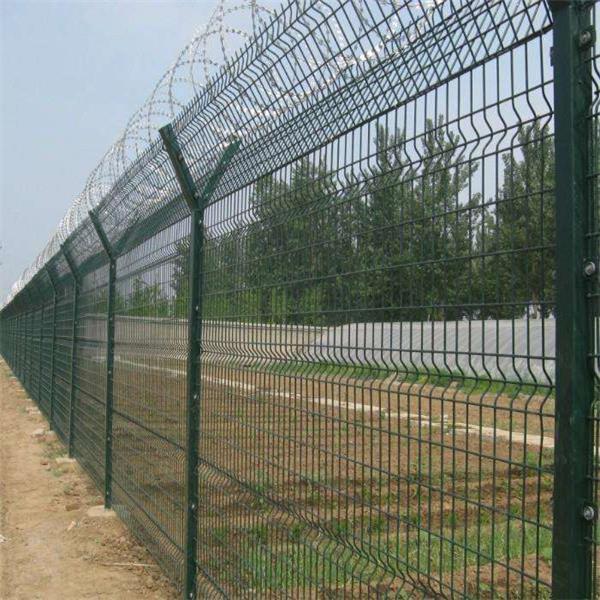 機場鐵絲網(wǎng)圍界 由PVC涂塑的鋼筋網(wǎng)片、Y型噴塑欄桿和雙圈螺旋交叉刺絲滾籠組成...行熱鍍鋅和熱浸塑處理,防腐功能強、使用壽命長,是使用量最廣泛的機場圍界樣式。機場圍界鐵絲網(wǎng)其他網(wǎng)孔具體尺寸可以根據(jù)客戶要求定做。 [ 查看詳情 ]