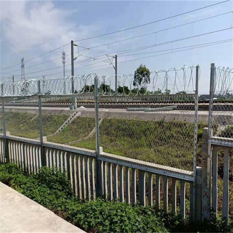 鐵路防護柵欄 說明: 鐵路防護柵欄 主要分鍍鋅防護柵欄、浸塑防護柵欄倆大種類,是以立柱加網(wǎng)片連接而成。 選用優(yōu)質(zhì)低碳鋼絲焊接。...立柱采用混凝土澆筑件,工程造價低,強度高 整體穩(wěn)定 好,彩色塑層具有良好的抗腐蝕和裝飾效果,網(wǎng)圍界整體和諧 美觀。 [ 查看詳情 ]