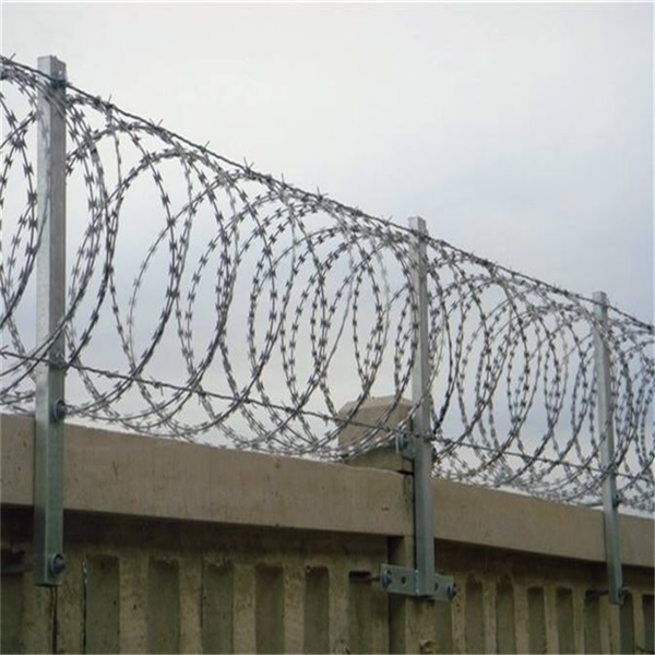 (1)刺絲滾籠采用刀片刺繩繞圈后相鄰兩圈每隔120度用刺絲連接卡固定,張開(kāi)后形成蛇腹網(wǎng)狀,閉合后刀片刺繩卷徑為50cm,張開(kāi)后每交叉圈安裝間距20cm,直徑不小于45cm。