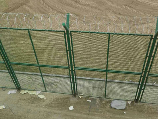 產(chǎn)品特點(diǎn):監(jiān)獄放風(fēng)場隔離網(wǎng)具有防腐、防老化、抗曬、耐候等特點(diǎn)。螺旋型交叉刀片刺網(wǎng)是在兩條刀片刺網(wǎng)之間以不銹鋼片和鍍鋅鋼片強(qiáng)力夾扣,展開后即呈交叉狀。