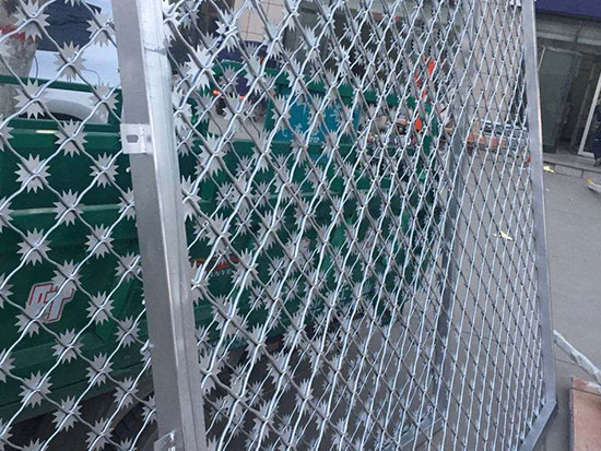 看守所鋼網(wǎng)墻組成結(jié)構(gòu):首先把網(wǎng)片焊接在鐵管框架上,框架是方管或者圓管焊接成的框架結(jié)構(gòu),在框架上焊接用于個立柱連接的連接板,用防盜螺栓與立柱連接。為了保證網(wǎng)片的防拆卸性能,網(wǎng)片連接方式采用特制防盜緊扣件,有效防止人為的破壞性拆卸。