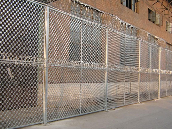 看守所鋼網(wǎng)墻通常采用鋼絲直徑為5mm、6mm、6.5mm,網(wǎng)孔采用50mm*100mm、50mm*50mm、50mm*200mm、50mm*150mm,