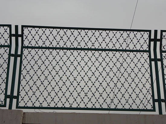 監(jiān)獄刀刺隔離網(wǎng)又名刀片刺繩隔離網(wǎng)、刀刺防護(hù)網(wǎng)。監(jiān)獄刀片隔離網(wǎng)是一種新型防護(hù)網(wǎng)。該產(chǎn)品具有嚇阻效果好.美觀.施工便利.經(jīng)濟(jì)實(shí)用等優(yōu)異特點(diǎn)。