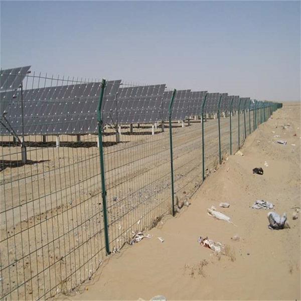 光伏電站圍欄常規(guī)采用直徑4mm優(yōu)質(zhì)低碳鋼絲點(diǎn)焊而成,絲徑范圍為2.8-6.0mm