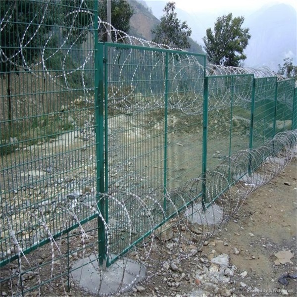 山地圍欄網(wǎng)頂部可加裝螺旋刀刺網(wǎng)或刺絲,加強(qiáng)防護(hù)等級。