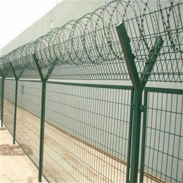 在看守所、監(jiān)獄中,蛇腹形刀刺網(wǎng)更多的是和鋼網(wǎng)墻、隔離網(wǎng)結(jié)合使用。在鋼網(wǎng)墻、隔離網(wǎng)的立柱上設置好Y型支架,支架的大小根據(jù)蛇腹形刀刺網(wǎng)的規(guī)格來決定。在安裝時廠家會配套專用的拉絲(或者V網(wǎng))、卡扣、專用鉗子等工具,安裝師傅將拉線拉緊的同時把刀刺網(wǎng)成卷、等距的放到Y(jié)型立柱上,將拉絲固定好后開始拉伸刀刺網(wǎng),拉伸的同時將刀刺網(wǎng)與拉絲用卡扣進行固定。一般每米用卡扣5-6個。