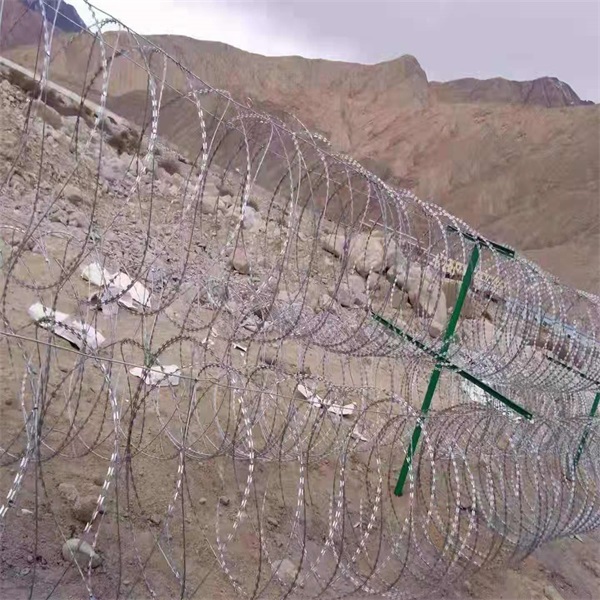 邊境防護(hù)鐵絲網(wǎng) 的結(jié)構(gòu)分類(lèi)總結(jié):Y字型邊境鐵絲網(wǎng)、干字形邊境鐵絲網(wǎng)、品字型邊境鐵絲網(wǎng)、2...m,刀片采用厚度0.5mm的q195鋼板沖切制作,芯絲由hpb300∮6.5mm高線鋼絲冷拔加工。)架設(shè)形成。 [ 查看詳情 ]