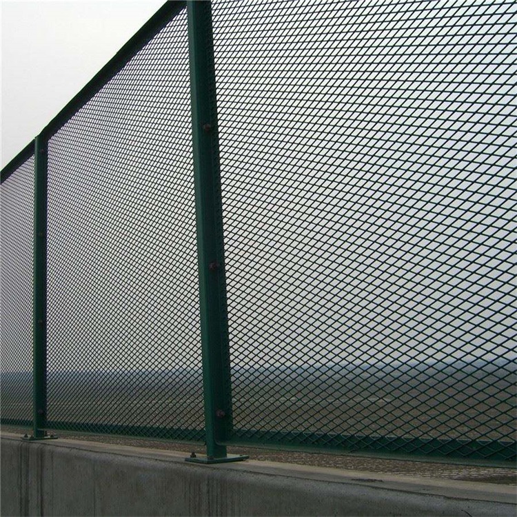 橋梁防拋網(wǎng)有兩種大分類,一種是鋼板網(wǎng)防拋網(wǎng)。此種防拋網(wǎng)網(wǎng)面選用鋼板沖孔而成,邊框使用的是角鐵,立柱使用的是方管或H型鋼。鋼板網(wǎng)的網(wǎng)孔不宜選擇過大,網(wǎng)孔過大會導(dǎo)致對一些較小的拋擲物無法達到攔截作用,所以鋼板網(wǎng)的網(wǎng)孔一般為35mm*50mm、25mm*25mm,網(wǎng)孔呈菱形狀;邊框使用到的角鋼沒有固定要求,只要能夠滿足鋼板網(wǎng)焊接需要即可;立柱的選擇是根據(jù)橋梁防拋網(wǎng)的高度選擇性使用的,高于2m的為保證牢固,都會選擇H型鋼或槽鋼,低于2m的選擇方鋼或槽鋼。
