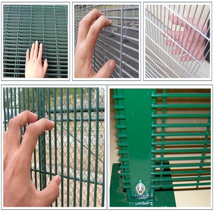 監(jiān)獄防攀爬隔離網(wǎng)又稱密紋網(wǎng),監(jiān)獄防攀爬隔離網(wǎng)的一個(gè)主要特點(diǎn)就是它的網(wǎng)孔是很密的,比較細(xì)長,人的手指無法插入進(jìn)而無法借力向上攀爬的,這種網(wǎng)子也被稱為358防爬網(wǎng),在防爬網(wǎng)的基礎(chǔ)上改進(jìn)一下,在它的頂部加裝帶刺鐵絲滾籠,就成為了監(jiān)獄防攀爬隔離網(wǎng)了,它的隔離效果是很優(yōu)秀的。