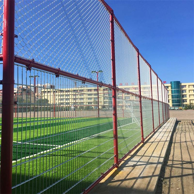 一種為直接用PVC包塑絲直接環(huán)繞來固定勾花網(wǎng),另一種為邊框焊接u型卡,勾花網(wǎng)經(jīng)過8cm的鋼筋棍來拉緊勾花網(wǎng),鋼筋棍在U型卡用螺絲固定,兩種方法都能夠到達(dá)球場護(hù)欄網(wǎng)的彈性力,價格直接環(huán)繞的要廉價,鋼筋棍的價格要高一點,兩者各有個的長處上下兩層的款式裝置和全框的意思是相同的。