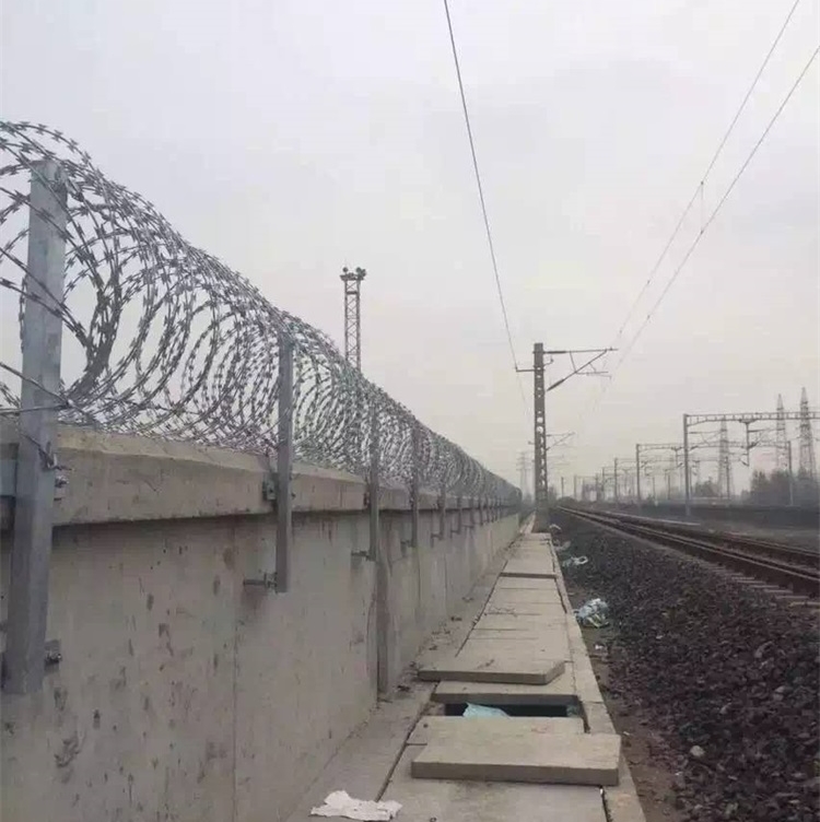 刺絲滾籠網(wǎng)墻刀刺網(wǎng)直條型刀刺繩產品與鐵絲刺繩相似,但刺的位置為刀片狀,一般長3米,柱間距也為3米,其長度也可根據(jù)客戶要求制作。安裝完成后,可以建造防護墻,在監(jiān)獄等防護性場所使用,其外觀顏色可以自組合,具有美觀的防護作用。
