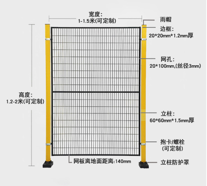 首先,隔離網(wǎng)應具備足夠的強度和穩(wěn)定性,能夠承受機器人運動時產(chǎn)生的沖擊力和振動。機器人在工作時會產(chǎn)生較大的力量和速度,如果隔離網(wǎng)不具備足夠的強度,可能會導致隔離網(wǎng)破損,從而影響生產(chǎn)過程的正常進行。