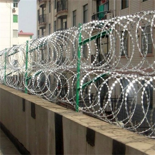 圍墻防護刀刺滾網(wǎng) 常用的是BTO-22刺絲滾籠,每三米一組熱鍍鋅支架,表面采用...可分為兩種,一種是全熱鍍刀片刺繩,一種是半熱鍍刀片刺繩,價格只是稍微低于全熱鍍,除非是一次性使用,否則不推薦。 [ 查看詳情 ]