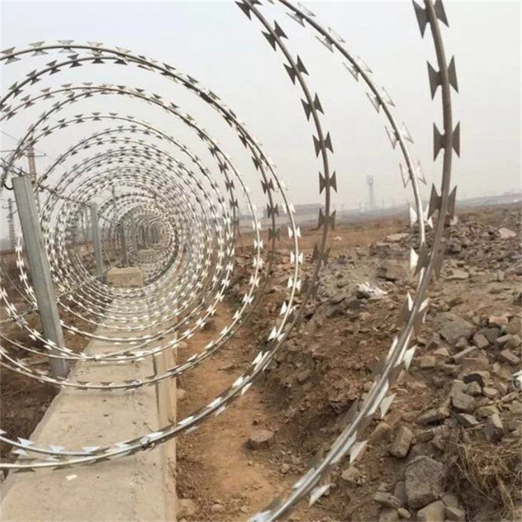 刀片刺絲的工藝及用途 (刀片刺網(wǎng))螺旋式 按叫法分為: 刀片刺網(wǎng) 、刀片刺絲、蛇腹網(wǎng)、刮刀型刺網(wǎng)、刮刀型刺絲、手風琴狀刺網(wǎng)、手...、銀行,以及生活小區(qū)圍墻、私人住宅、別墅的圍墻、門窗、高速公路、鐵路護欄以及邊等用來防護保安。 中國監(jiān)獄基本上用的都是刀片刺網(wǎng)。 [ 查看詳情 ]