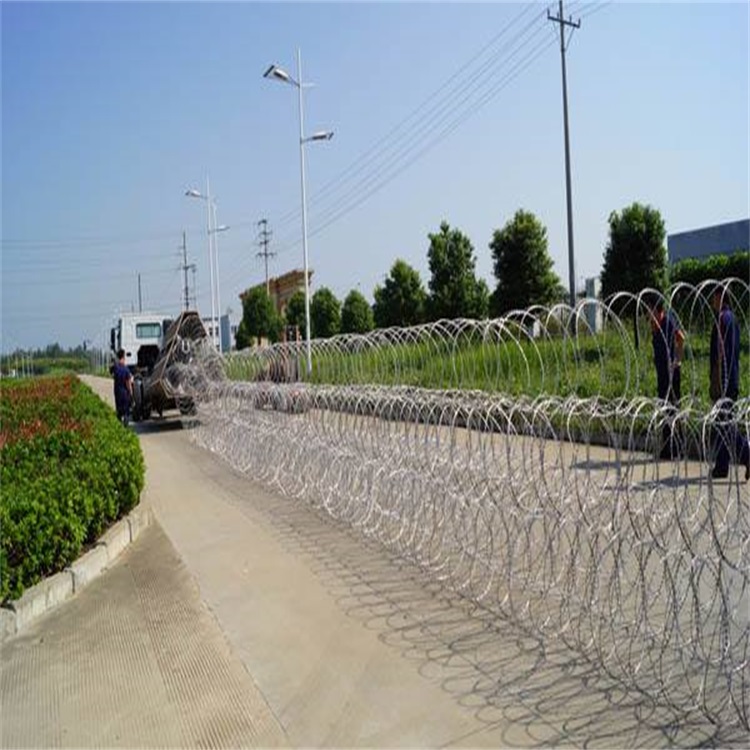 刀片刺繩 的用途有哪些: 刀片刺繩 材質(zhì):鍍鋅板線及不銹鋼板線。 用 途:廣泛應(yīng)用于軍事、監(jiān)獄、拘留所、政府辦公樓及其他國家安...刺繩是一種刀片刺網(wǎng)做成籬笆型的防護(hù)網(wǎng),刀片實(shí)用且外形美觀,主要用于圍欄、門窗的防護(hù)和軍事防御等長度、直徑可依客戶要求制作。 [ 查看詳情 ]