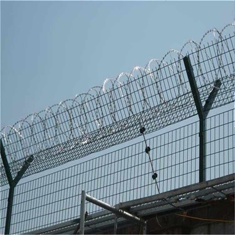 監(jiān)獄鋼網(wǎng)墻網(wǎng)高一般采用 2 米,立柱高度 2.5 米成 Y 字型,在 2 米高的網(wǎng)片上邊架上直徑 50cm 或 60cm 的刀刺網(wǎng),... 監(jiān)獄網(wǎng)墻制造及特點:鋼絲為芯絲,將沖壓好的刀片包裹在芯絲上,一次制成。產(chǎn)品具有極強的防護(hù)能力和的恐嚇能力,安裝方便,壽命長。 [ 查看詳情 ]